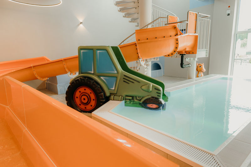 A modern children’s pool with typical regional attractions such as a tractor slide or a water-spraying cow on a further 300 m² complete the offer for the little ones.