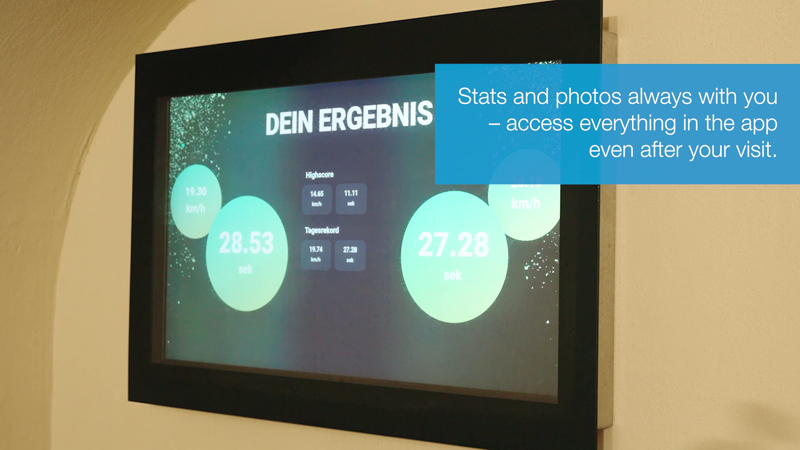 The display board in the bath makes it possible to share the personal result. The slide results can be shared directly with others during or after the visit to the pool. Or for the marketing of the baths, for example, to encourage the bathers via social media to improve their personal high score in order to achieve the weekly or monthly victory. So as not to fall behind in the rankings, the next visit to the pool is not postponed for long!