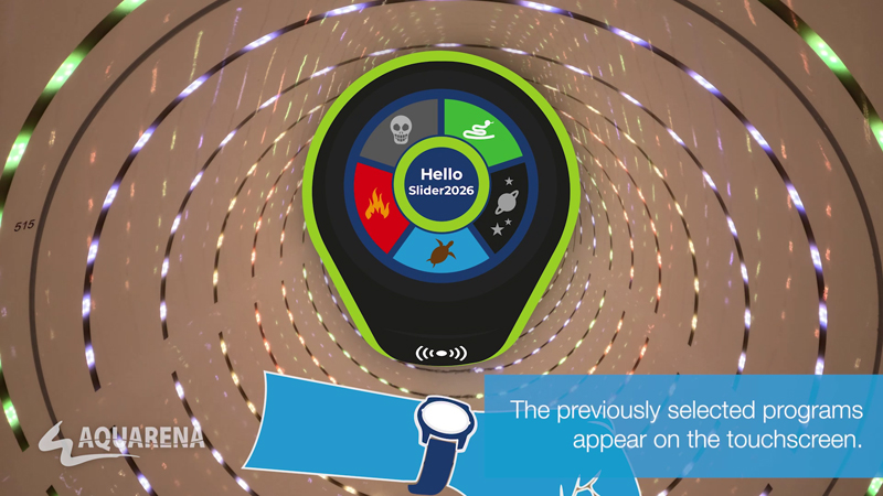 When entering the bath, the bather logs in with his personal nickname and immediately his settings, which he has already made at home, are active. Thus, the slide guest has created his personal slide experience.