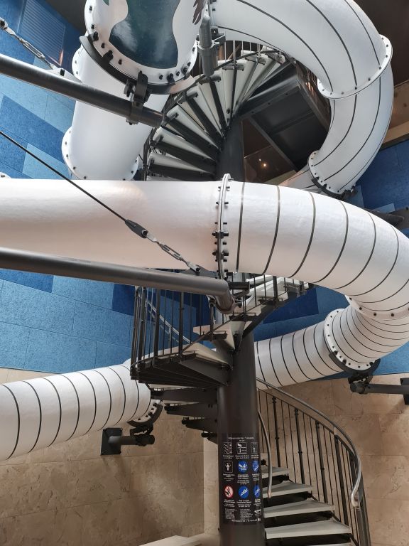 Die Rutschenanlage ist wärmegedämmt. Für Helligkeit im Inneren der Rutsche sorgen zahlreiche lichtdurchlässige doppelschalige Bullaugen mit unterschiedlichen Smiley-Motiven. Selbstverständlich mit Zeitnehmung.